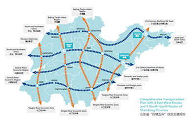 “十四五”期間,山東將基本建成互聯互通的基礎設施主骨架。其中包括“一軸兩廊十通道”的大通道基本形成,“1+2+4+4+N”的大樞紐加快構建。